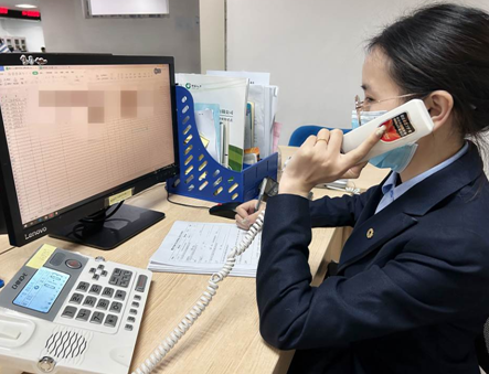 图:工作人员通过线上回访了解异地失能老人身体情况